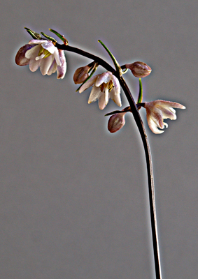 以前、掲載しようとして名前を調べたが、どうしても探せずに諦めていた。野生のランだと勘違いしていたが、ユリ科。こんなに小さい花でもユリの仲間だったのだ。やっと名前がわかって安心した。名前がわかっただけなのに。