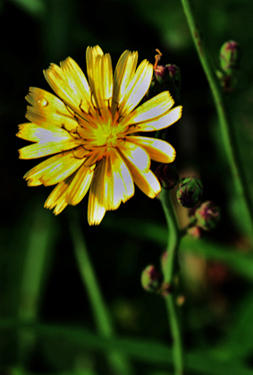 秋の麒麟草。春は、ハルがつかずキリンソウ。一枝に花をたくさん付ける形が発酵する酒の泡立ちに似ていることから、アワダチソウ(泡立ち草)とも呼ばれる。今は帰化種で背の高いセイタカアワダチソウに場所を譲っている。